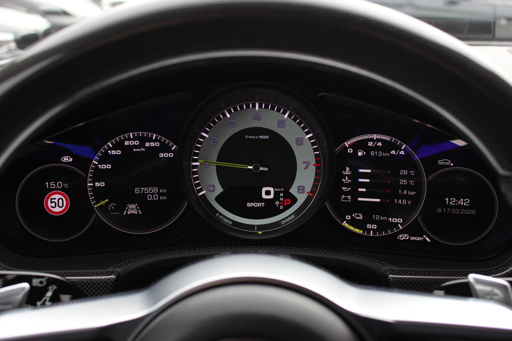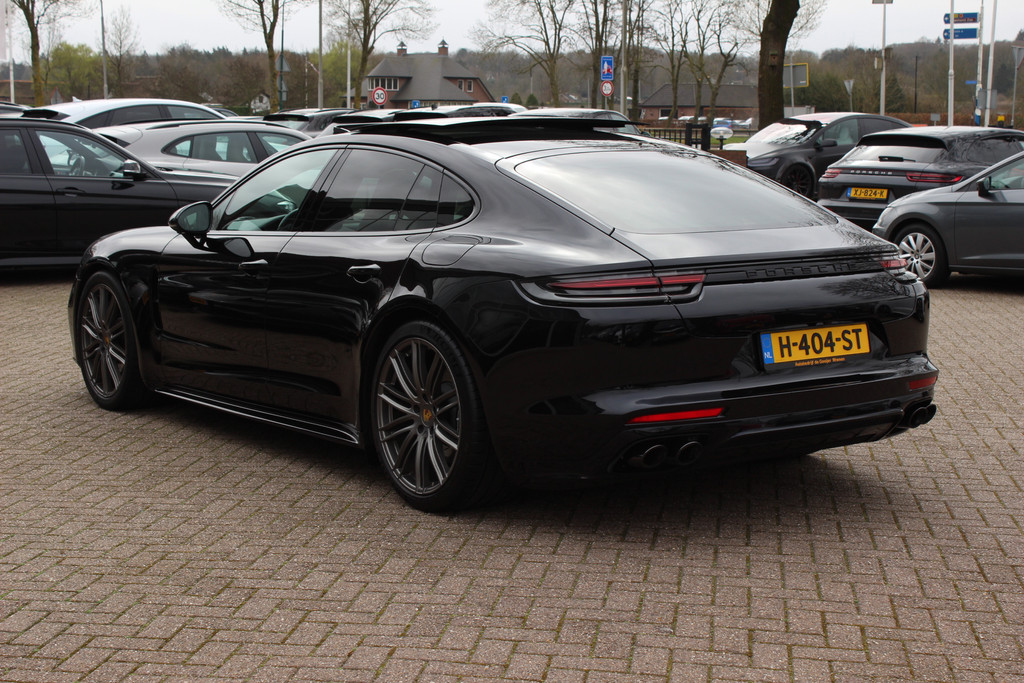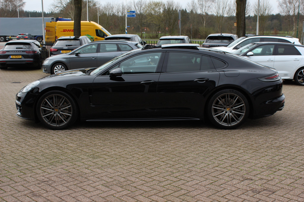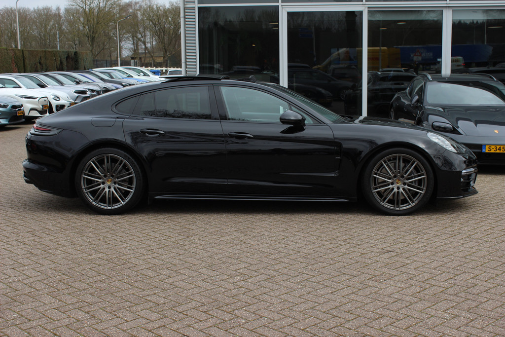 Porsche Panamera 2.9 4 E-Hybrid / Panoramadak / 360Camera / Achterasbesturing / Carbon intr. / Softclose / Luchtvering / Adaptieve stoelen / 21'' / Keyless / Matrix LED / Sportdesign+Chrono / Bose / Sportuitlaat / Stoelverwarming.